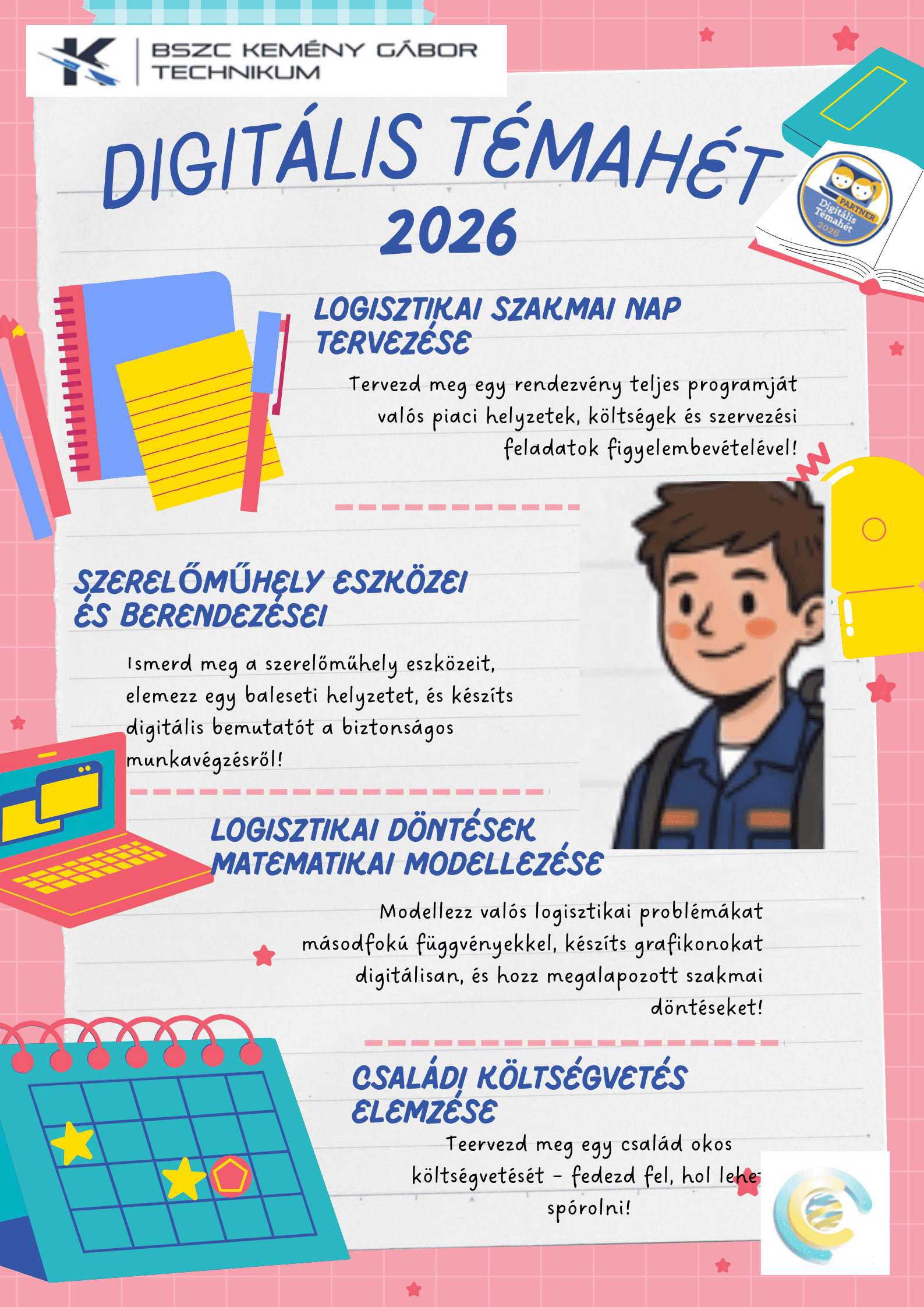 Technikumunk immár XI. alkalommal csatlakozik a Digitális Témahéthez, ahol valós problémák feldolgozásával fejlesztjük diákjaink digitális kompetenciáit, segítve felkészülésüket az AI-korszak gyorsan változó munkaerőpiaci kihívásaira.